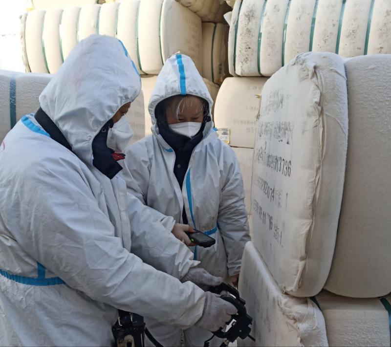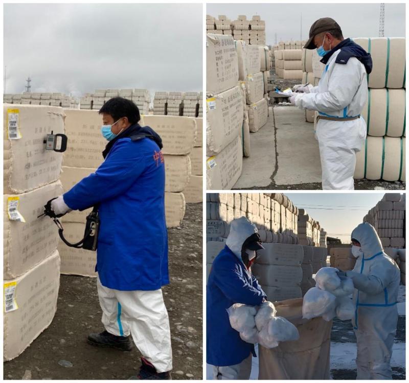 近日,新疆奎屯气温下降到零下20多度,在疫情和极端恶劣天气双重压力下,市纤检所驻库公检人员,团结一心,克服生活艰苦,强化责任、质量、安全意识,坚守监管棉公检阵地。统筹谋划,对疫情防控、人员安全、公检任务周密部署,严格执行现场检验操作作业指导书,极短时间内熟悉了棉包入库过磅、条码扫描、回潮率测试、样品取样、杂质分析、数据上传各个环节的技术操作规程,为新疆公检工作质量打下了坚实的基础。