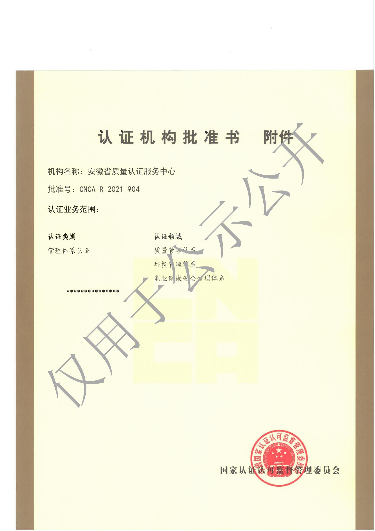 安徽省质量认证服务中心(AQC)是安徽省市场监督管理局直属事业单位,具有独立法人资格,是国家认监委批准的管理体系认证机构、中国标准化协会批准的“标准化良好行为评价机构”、“食安安徽”品牌认证联盟发起单位和副主席单位、长三角绿色认证联盟成员单位。中心位于安徽省市场监督管理局院内(安徽省合肥市包河区延安路13号),拥有2200平方米自有办公楼和现代化办公设施设备,凝聚了一支超百人、覆盖国民经济各领域且专业性强、素质过硬的专兼职专家队伍。中心持续注重展示新时代事业单位性质认证机构新形象,努力提升专业能力和公信力,致力于企业质量管理能力提升,服务市场监管工作,全力推动安徽认证事业高质量发展。